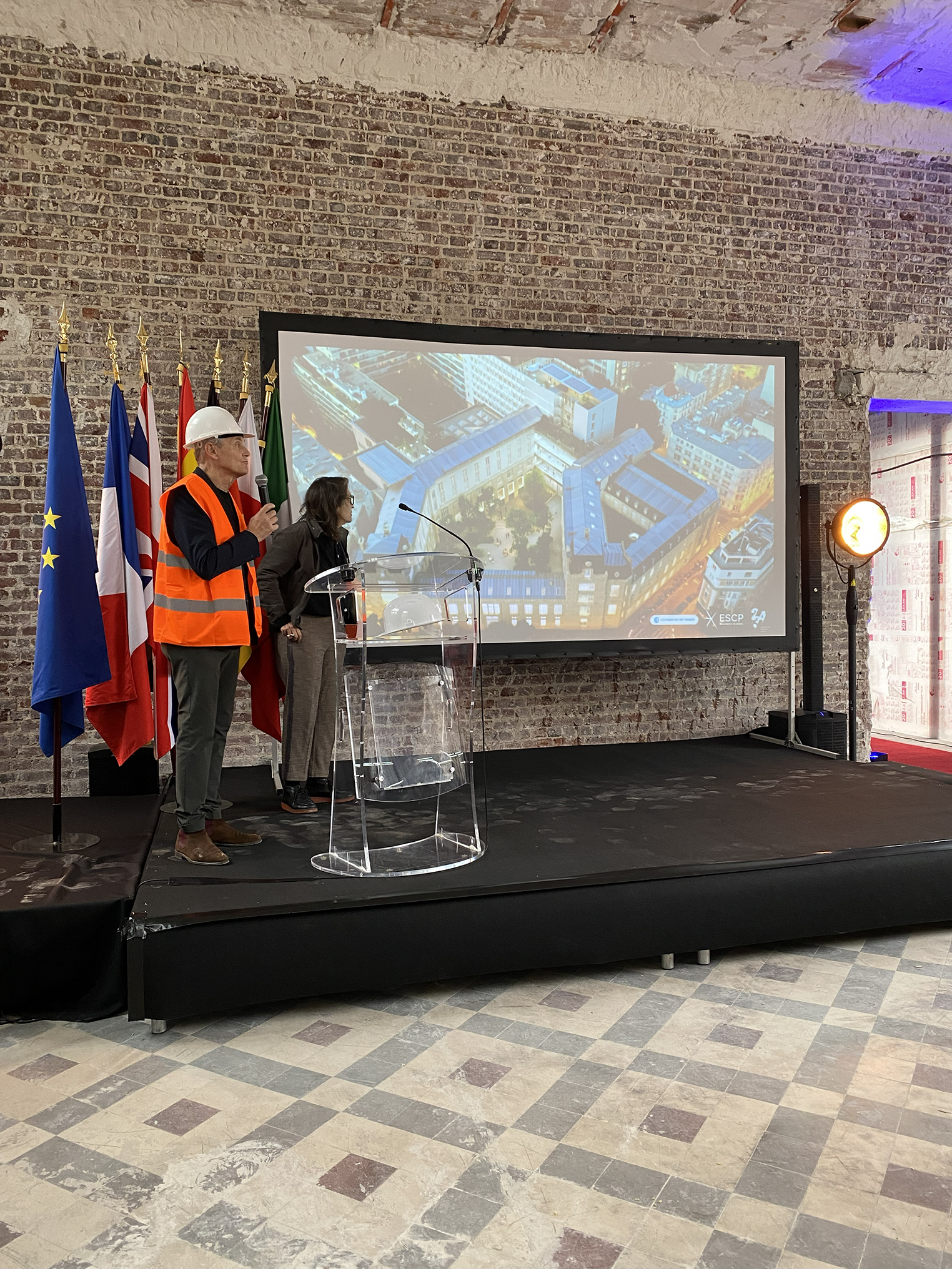 Le 14 novembre 2025, ESCP Business School a lancé le chantier de rénovation de son campus historique situé avenue de la République, à Paris. Le premier coup de pioche a été donné en présence de Marie-Christine Lemardeley, Adjointe à la Maire de Paris en charge de l’enseignement supérieur, de la recherche et de la vie étudiante, ainsi que de nombreuses personnalités du monde académique, économique et institutionnel. Porté par la CCI Paris Ile-de-France et ESCP Business School, ce projet conçu par Ateliers 2/3/4/ vise à transformer un site emblématique inauguré en 1898 en un campus vertical, durable et innovant, pensé pour répondre aux défis pédagogiques, numériques et environnementaux du XXIème siècle.