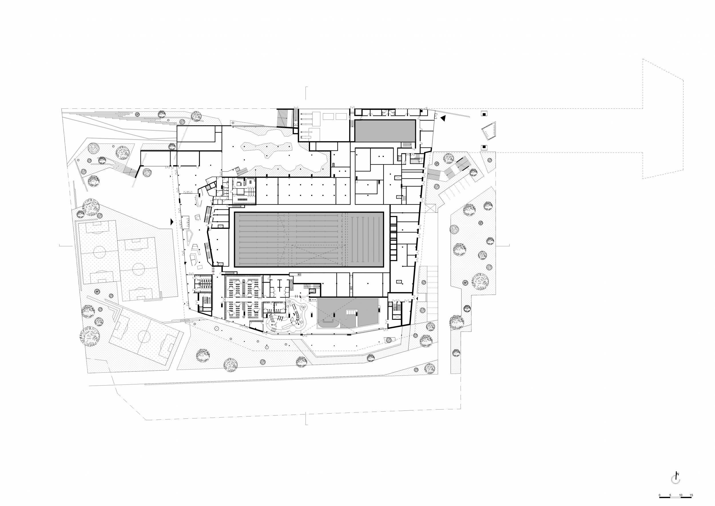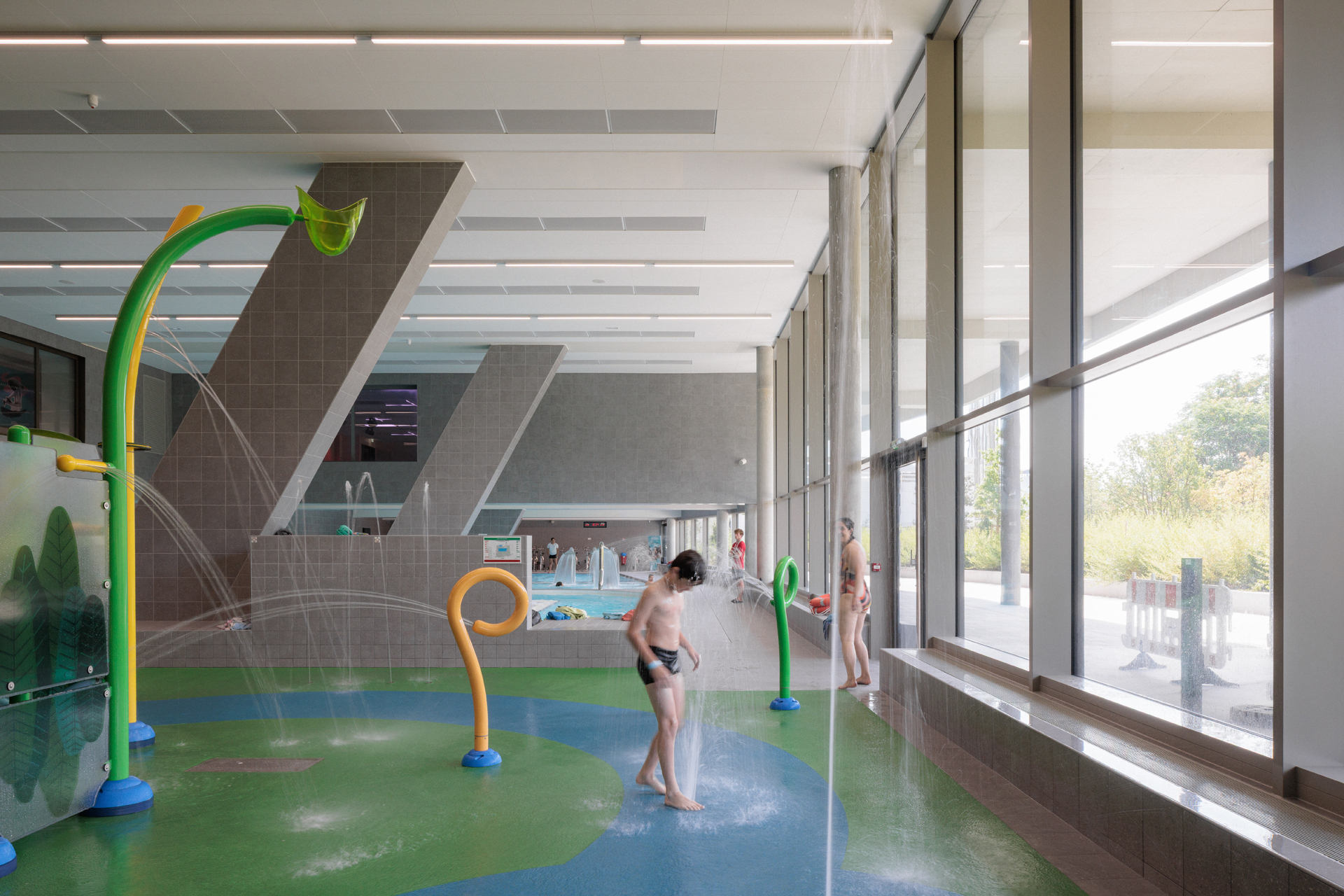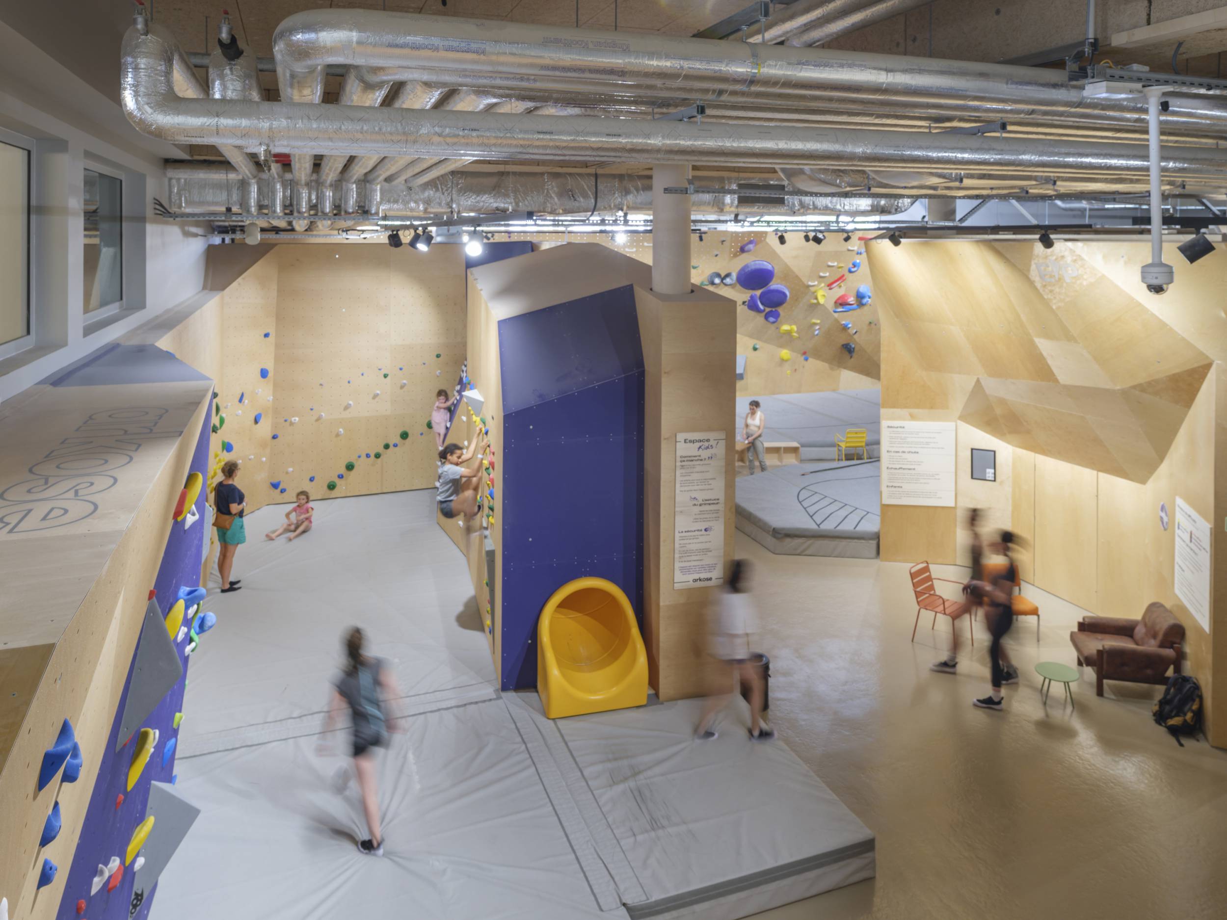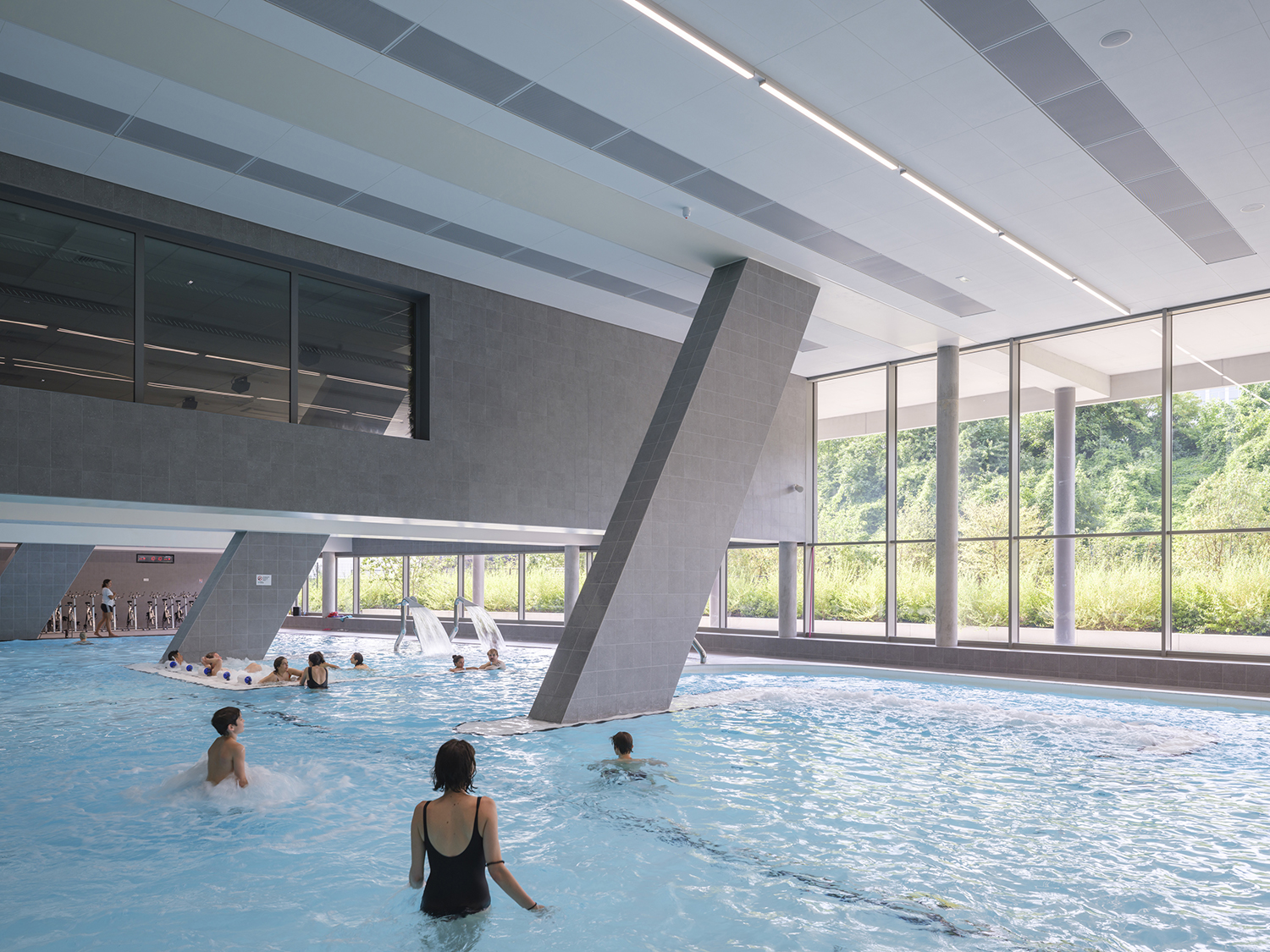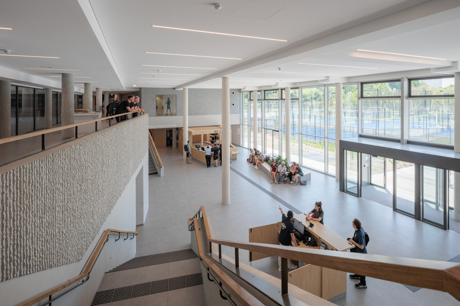Seeing makes you move: we’ve long known that the built environment can encourage people to move. Thanks to its transparent façade, sport is visible from the outside. This deliberate openness is part of the design strategy: sports facilities are social hubs, not closed blocks. What’s more, the transparency – which is also present in the building itself – means that sport can be discovered from the foyer, without having to pay for a ticket to enter the facility.