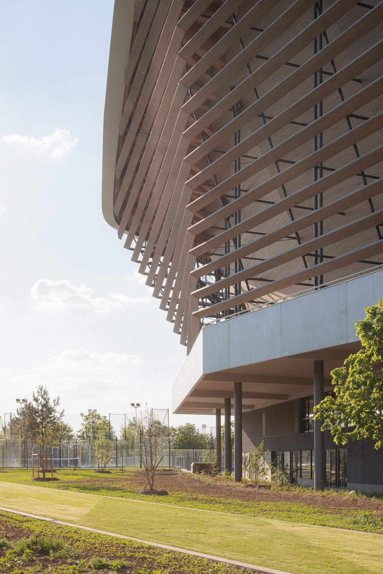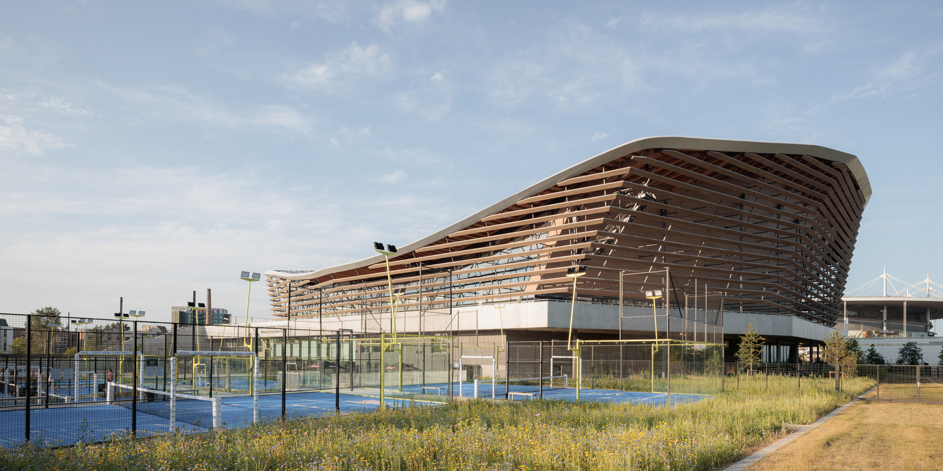 As the only major facility built for the 2024 Games, hosted by la Metropole du Grand Paris, the compact and generous architecture is inspired by nature, with a philosphy of just the right amount of space, and contributes to the legibility and sensibility of the design.