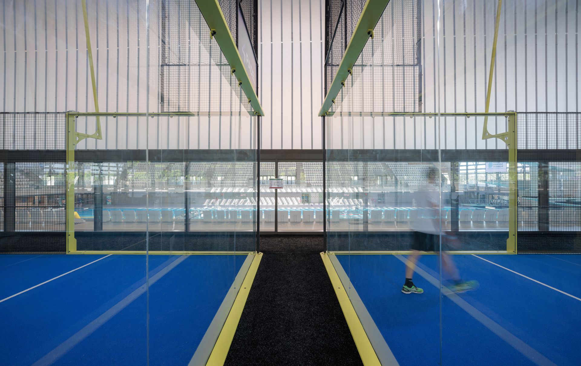 After the international competitions, the Aquatics Centre becomes a multi-sports complex where learning to swim and training side-by-side with professional athletes, padel, yoga and fitness, bouldering and 5×5 football all come together.
